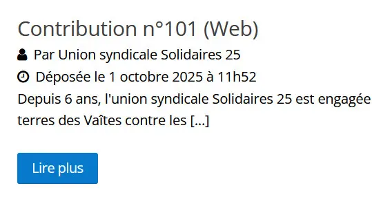 Depuis 6 ans, l'union syndicale Solidaires 25 est engagée dans la lutte collective pour la défense des terres des Vaîtes contre les projets de leur bétonisation, qu'ils aient émané de l'ancienne municipalité (construction de 1200 logements) ou de l'actuelle (construction de 600 logements). Pas de justice sociale sans justice environnementale.