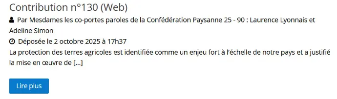 Engagée depuis le début auprès de l’association du Jardin des Vaîtes, dans sa lutte pour préserver cet espace agricole, la Confédération Paysanne réaffirme dans cette enquête publique son opposition au projet d’urbanisation des Vaîtes. Elle rappelle sa position favorable au passage de la zone 1 AU – Vaites en zone A et à l’inverse, son opposition à sa transformation en zone 1 AU0, et plus particulièrement son opposition au projet d’urbanisation des Vaîtes porté par la commune.